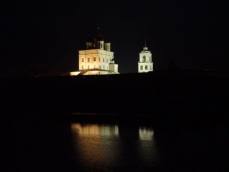 Первый храм на этом месте был поставлен еще в Х веке — его сооружение, как мы знаем, приписывается самой княгине Ольге. На этом месте первой русской святой явилась Троица в виде трех лучей света, осветивших землю (сама княгиня наблюдала за явлением из-за реки, с того места, где сейчас стоят часовня и крест). С тех пор Троица стала небесным покровителем и духовным символом Пскова — тем же, чем для Новгорода была Святая София. А благодарный Псков, в свою очередь, называл себя Домом Святой Троицы…
