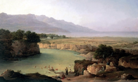 Вид реки Иордан при впадении в Мертвое море, Чернецов Н.Г. 1854 г. Фрагмент